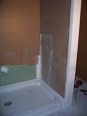 Then we noticed a gap of 2 1/2" on the wall separating the toilet and shower. He had to build it out, sheetrock and mud it. I am going in to paint it right now! Talk about coming in just before the wire!