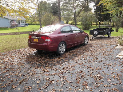 It has been a rainy weekend-very unusual for us to have rain all day let alone three days in a row! Bill mixed up some cement to fill in the hole where the old power line pole used to be.