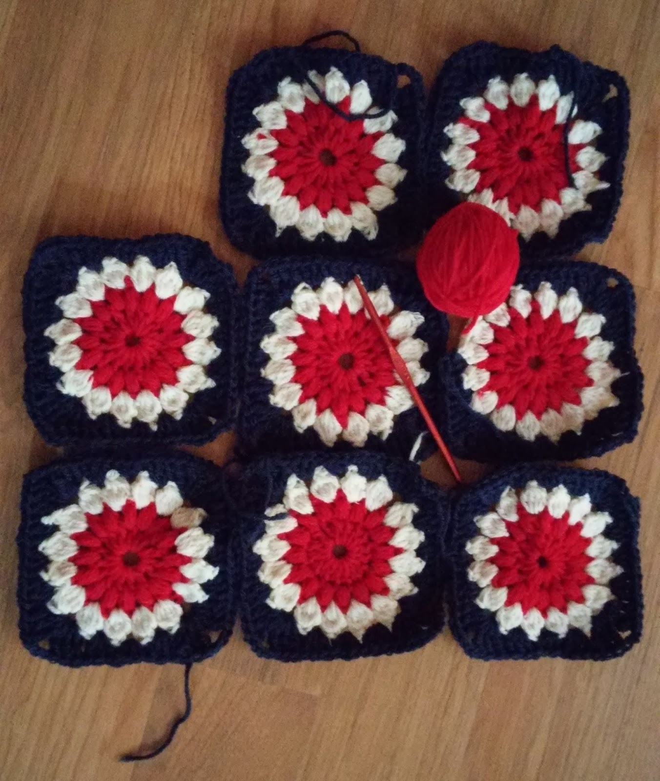 ReplyDeleteThe sunburst granny blocks are wonderful: I don't think I've seen that pattern before.