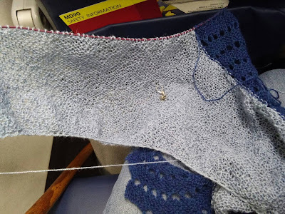 I had a longer layover and I was able to knit on the first flight this time.